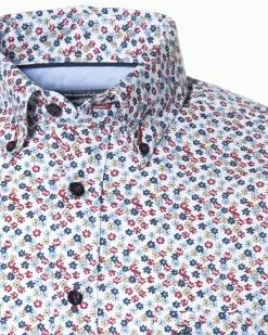 Fleurige bloemprint overhemd uit de collectie van Campbell, in blauwtinten, okergeel en rood. Hierdoor met vele pullovers te combineren. Het overhemd heeft een Regular Fit pasvo…