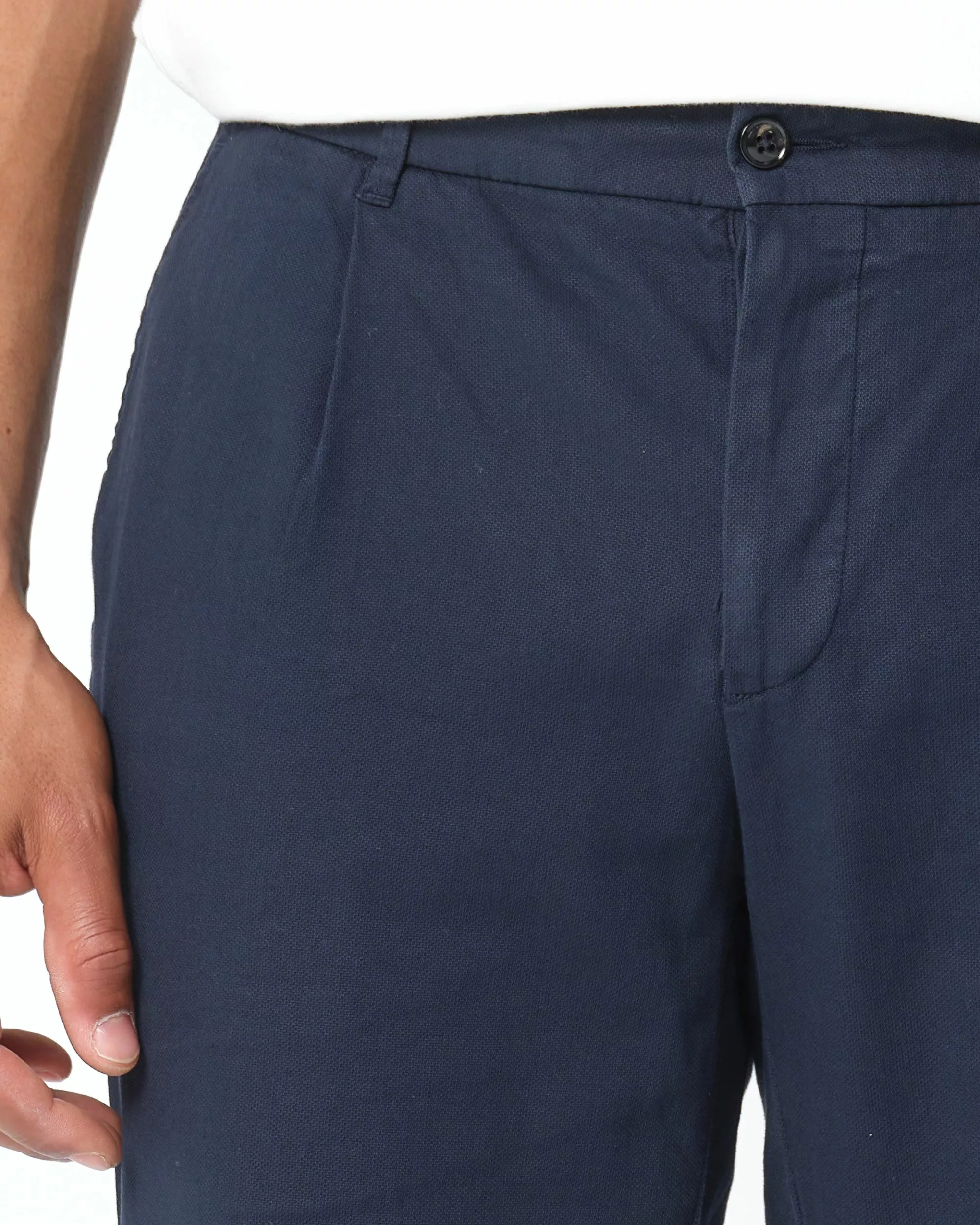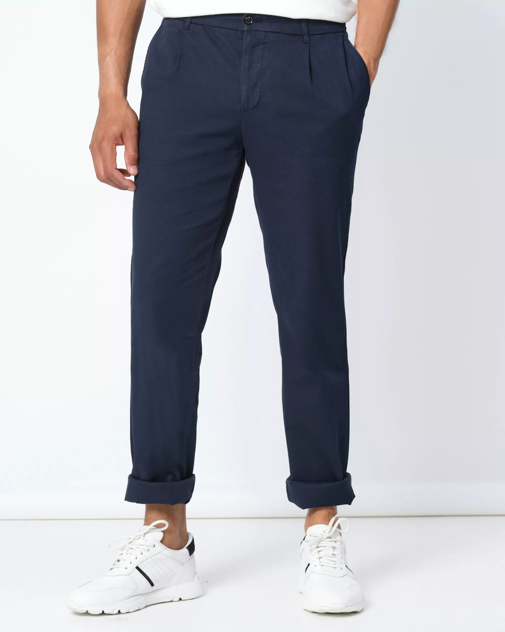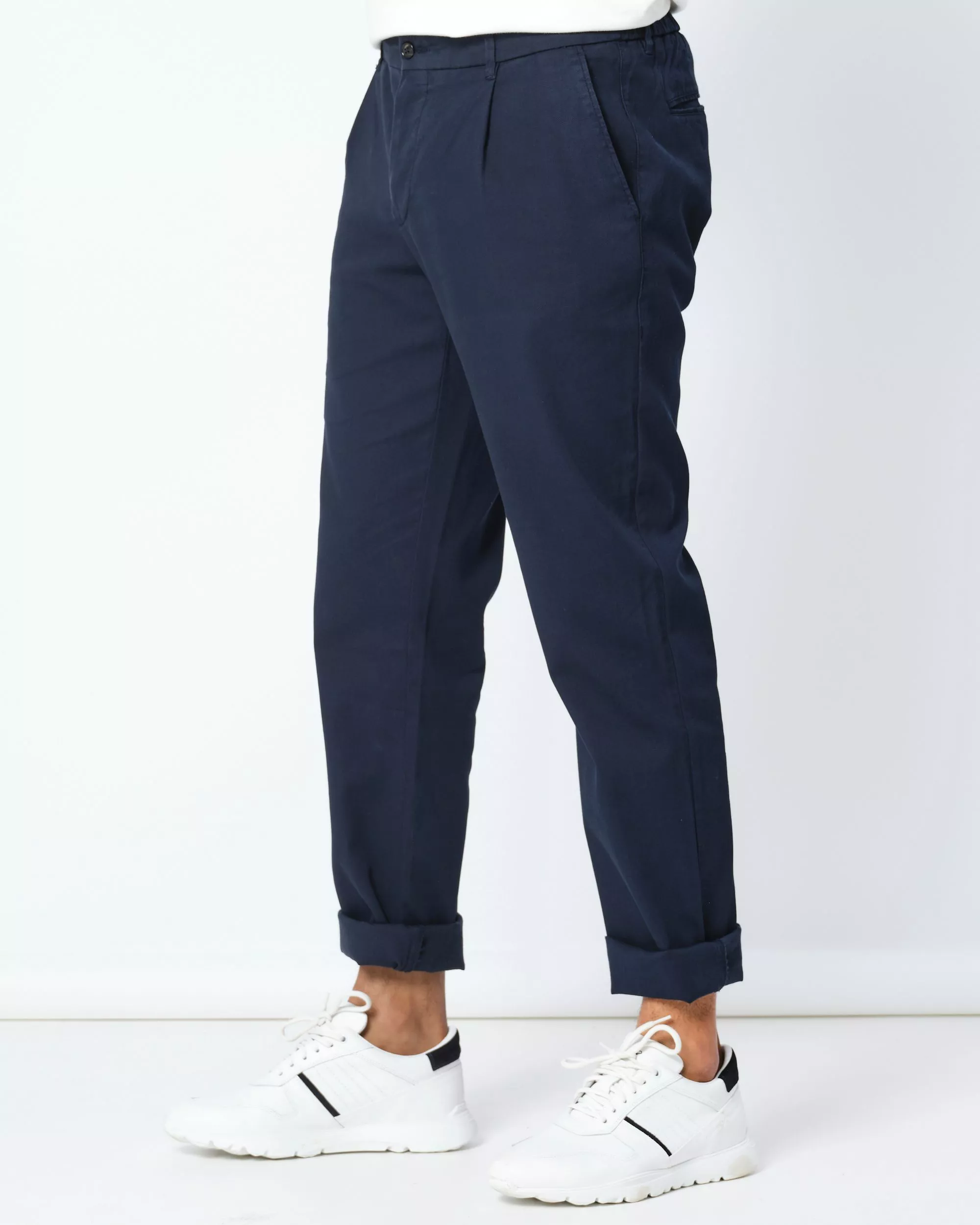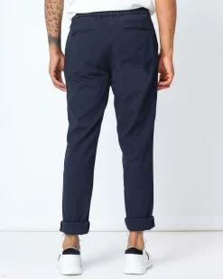 Deze donkerblauwe chino is gemaakt van een katoen en elastaan blend en draagt heel comfortabel en licht. De chino is een prachtig item voor de zomer en is gemakkelijk te combineren…