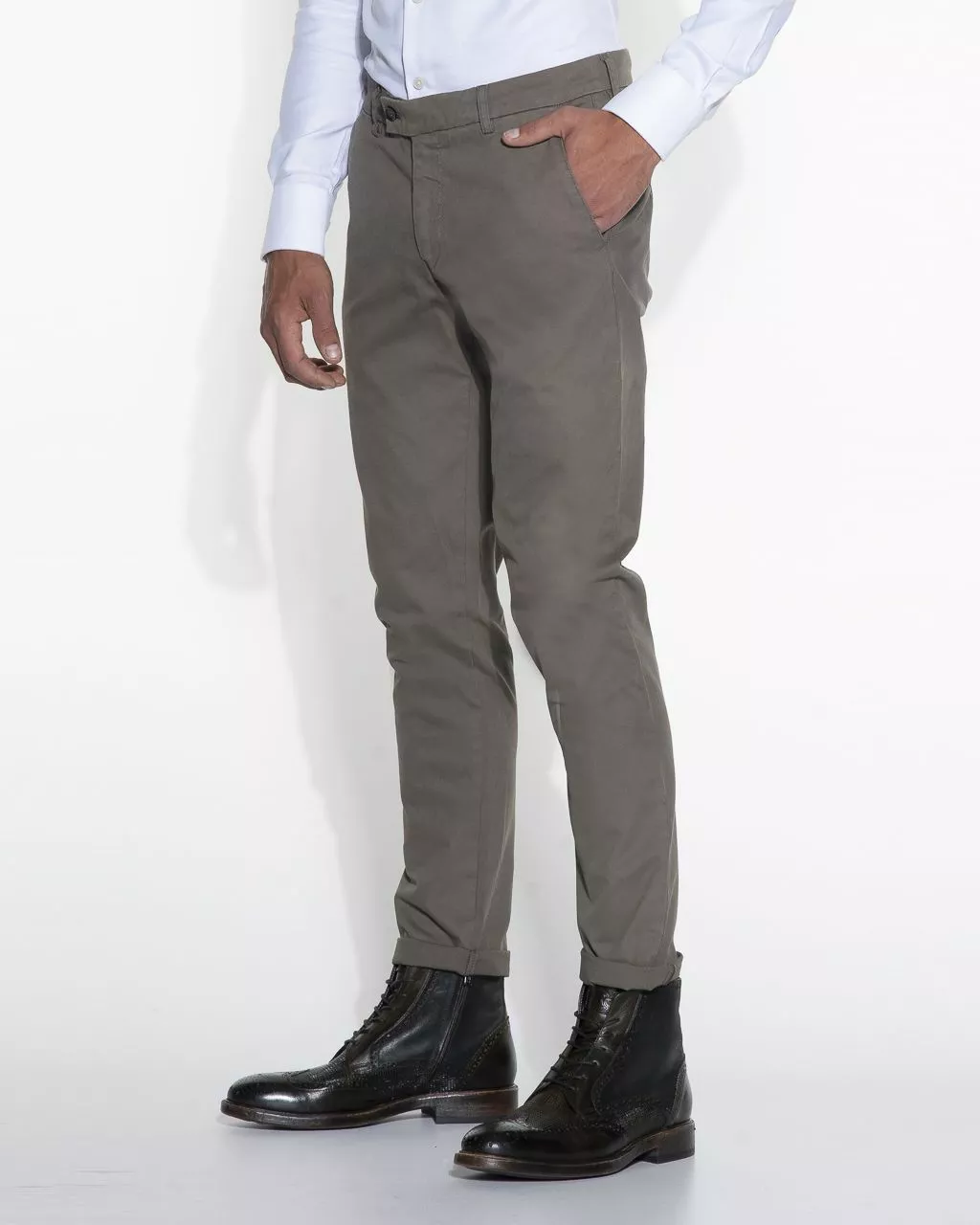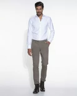 Deze chino van dutch dandies is gemaakt van 97% katoen en 3% elastan. Het is een slank model en loopt taps toe. De broek heeft twee steekzakken op het voorpand en twee paspelzakken…