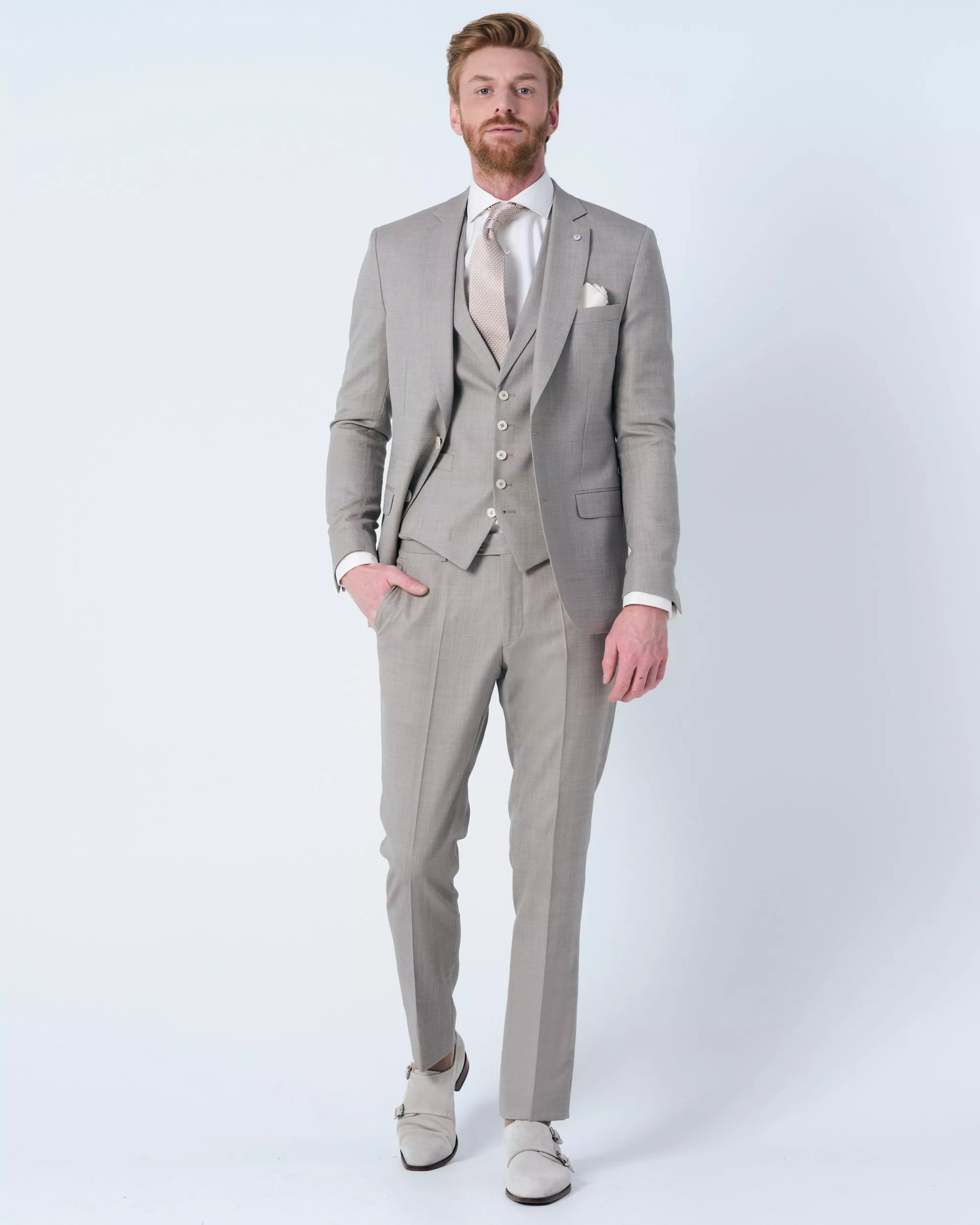 Prachtig trouwkostuum van Dutch Dandies. Dit kostuum heeft een slim fit pasvorm. Het colbert is voorzien van twee klepzakken en een borstzakje aan de voorzijde en heeft drie binnen…