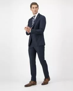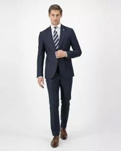 Mooie klassiek donkerblauwe Mix & Match pantalon. Deze pantalon heeft een materiaalsamenstelling van wol en zijde waardoor het een fijne hoogwaardige pantalon is die comfortabel dr…