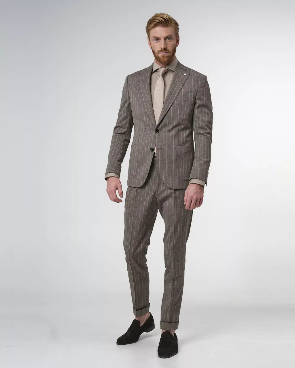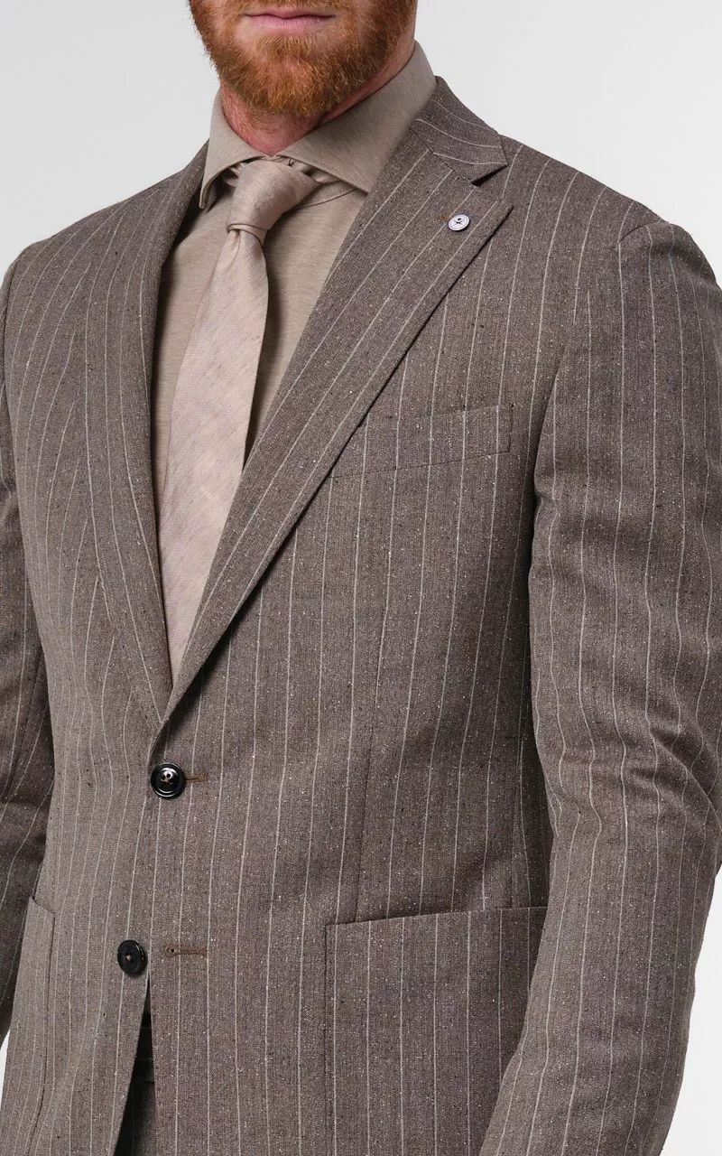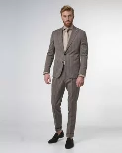 Prachtig tweedelig pak, gemaakt van 75% wol en 25% zijde. Dit pak met streepdessin is gemaakt door de Italiaanse wever Vitale Barberis Canonico. Hierdoor ben jij verzekerd van een …