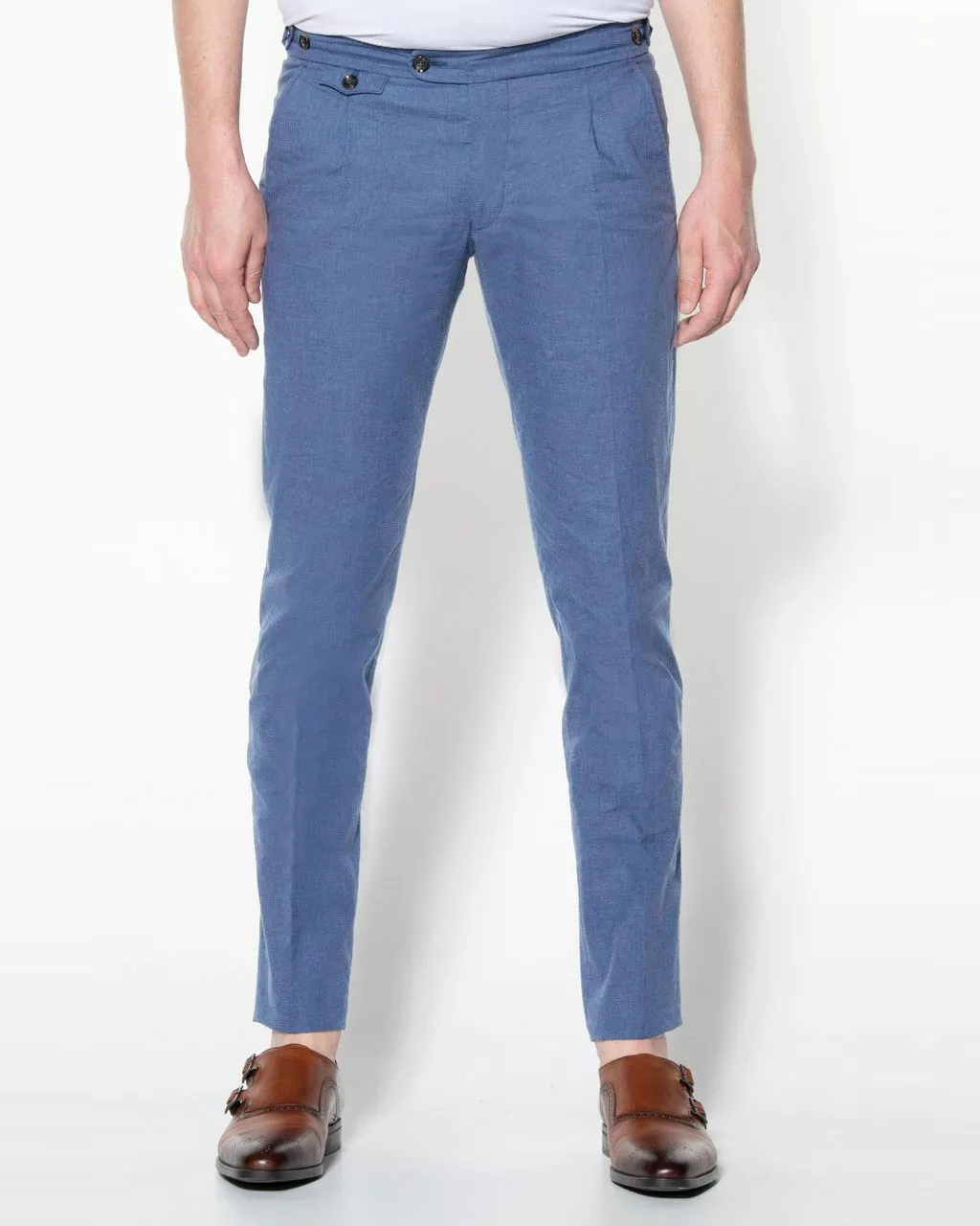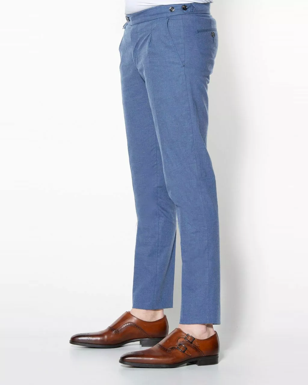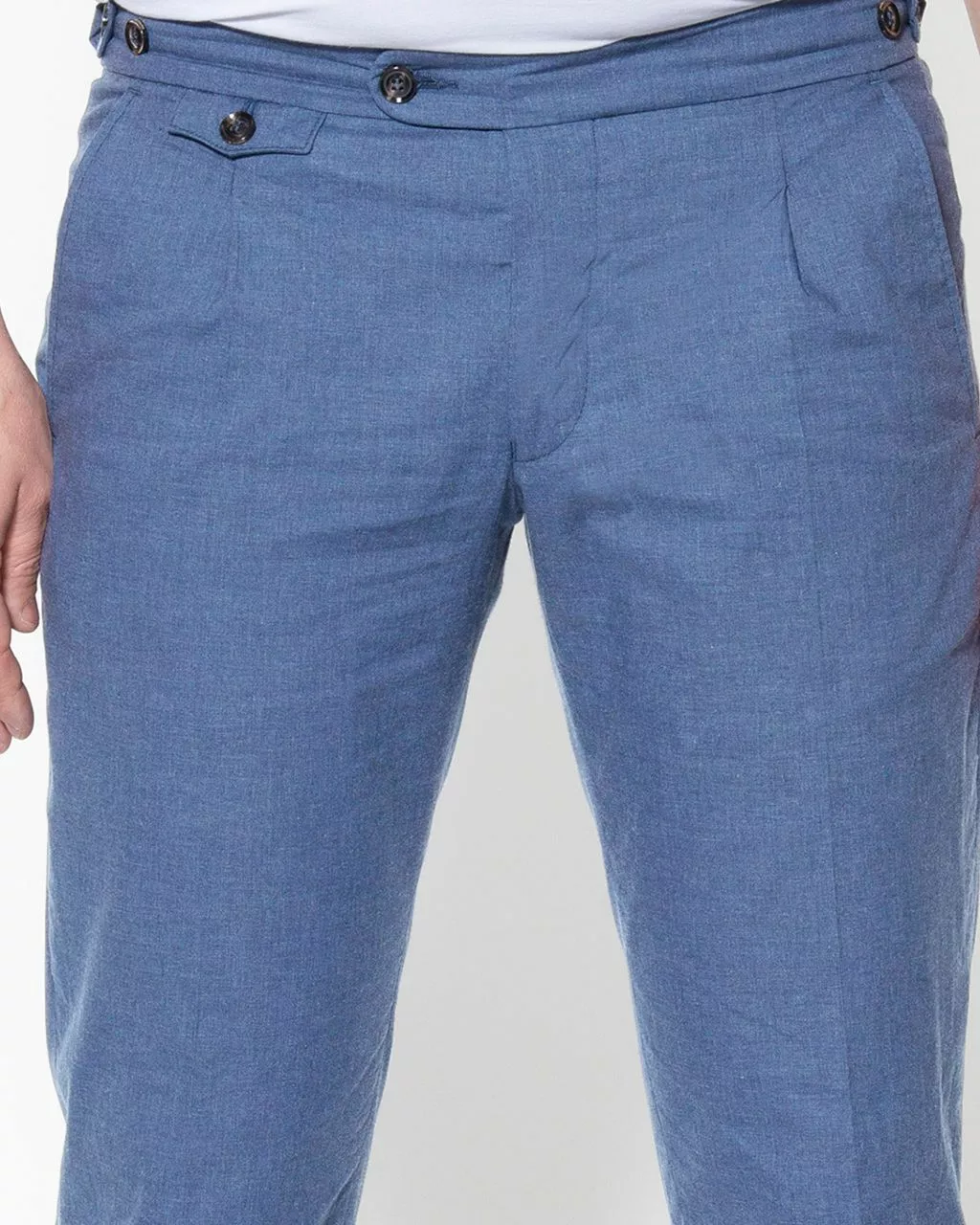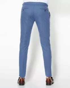 Luxe chino van Dutch Dandies in lichtblauw. De broek heeft geen riemlusse…