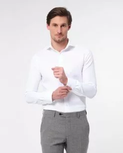 Dit prachtige witte overhemd, van het merk Dutch Dandies, is gemaakt van duurzame Italiaanse stoffen van Thomas Mason en is geweven in een fijne structuur. De unieke basic in uw ga…