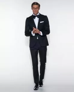 Een smoking van Dutch Dandies. Deze smoking heeft een slim fit pasvorm en een sluiting met één knoop. Ook heeft de smoking twee paspelzakken en een borstzakje. De smoking heeft …