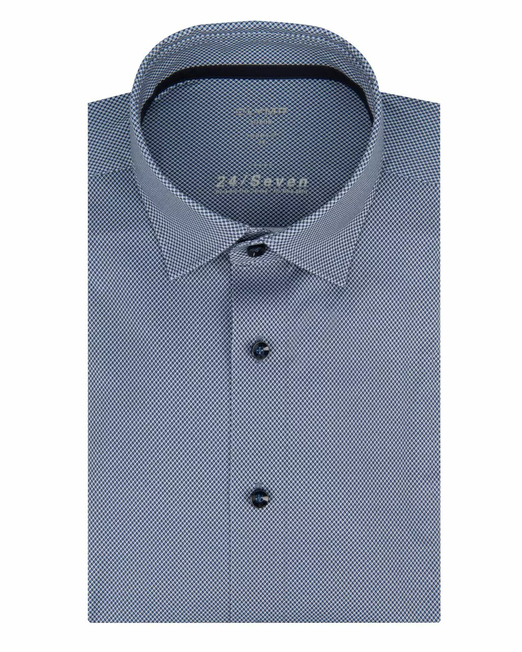 Dit stijlvolle overhemd van Olymp is gemaakt van 92% katoen en 8% elastan. Het overhemd heeft een klein patroontje in de stof en is afgewerkt met een donkere knoop. Door de stofsam…