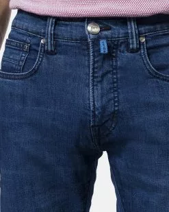 Fijne Pierre Cardin Antibes Jeans in donkerblauw. De jeans heeft een slim fit pasvorm waardoor deze mooi aansluit aan de benen. De jeans bevat een fijne stretch en is gemaakt van h…