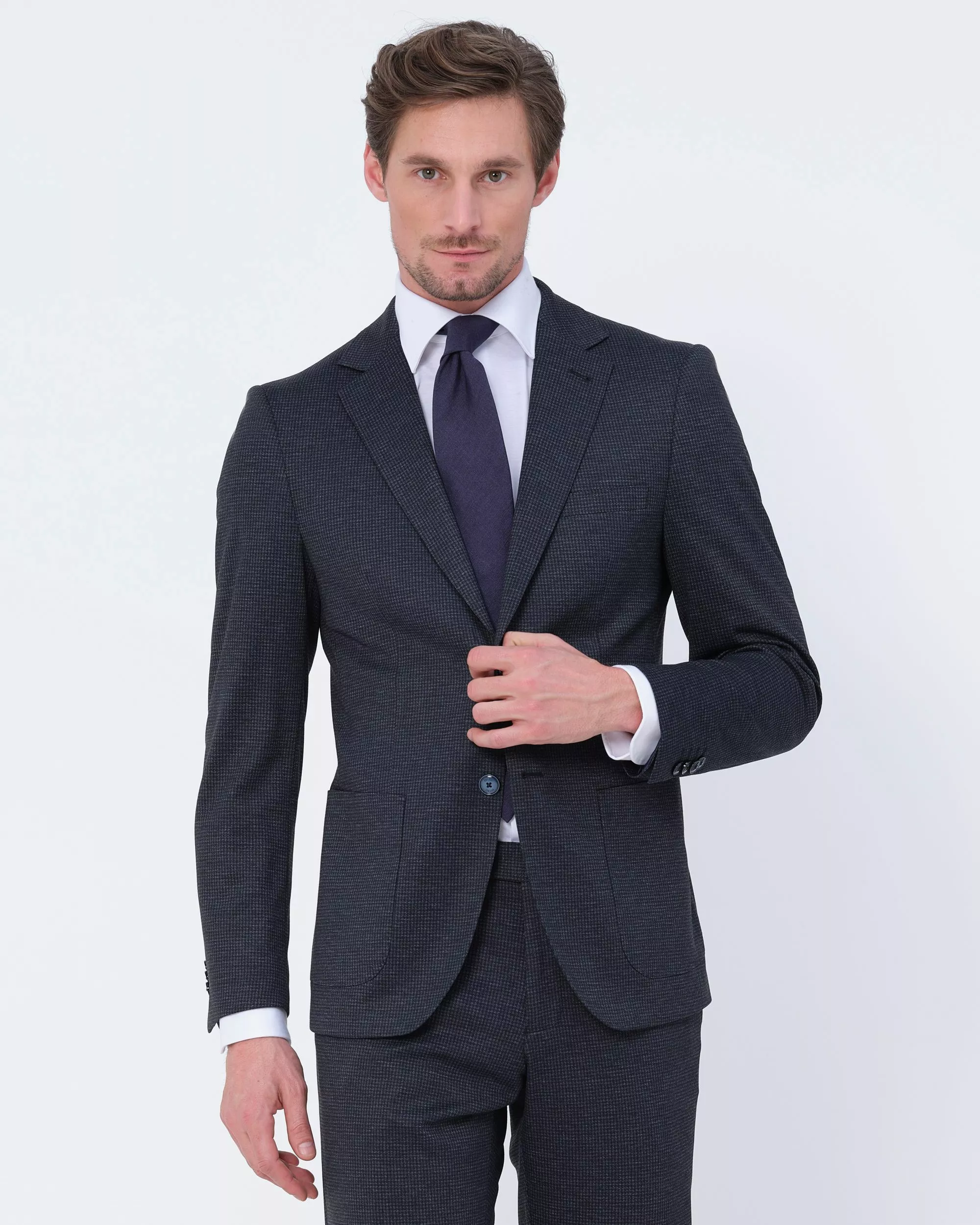 Dit Mix and Match colbert van Recall heeft een shaped fit. Het colbert heeft een licht dessinpatroon, waardoor het colbert wat sportiever wordt. Het colbert is voorzien van een afs…