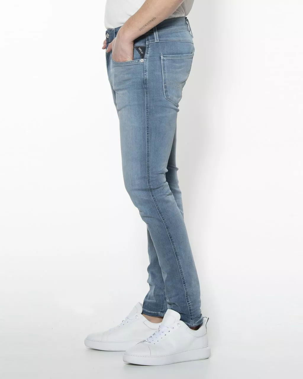 Een jeans van replay. In deze jeans wordt lekker veel elast…