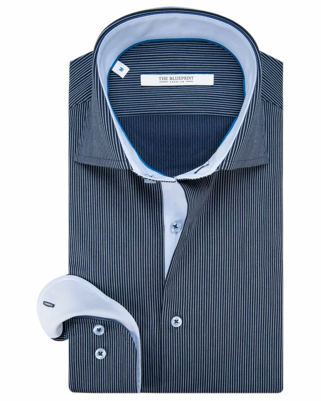 Overhemd in de kleur donkerblauw met een gestreep…